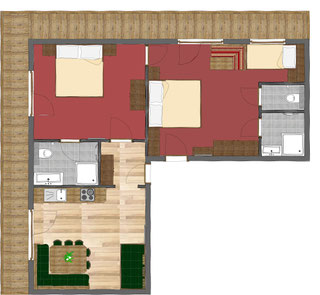 Auf Anfrage kann die Wohnung um zwei Doppelzimmer mit Dusche/WC bis max. 9 Personen erweitert werden.